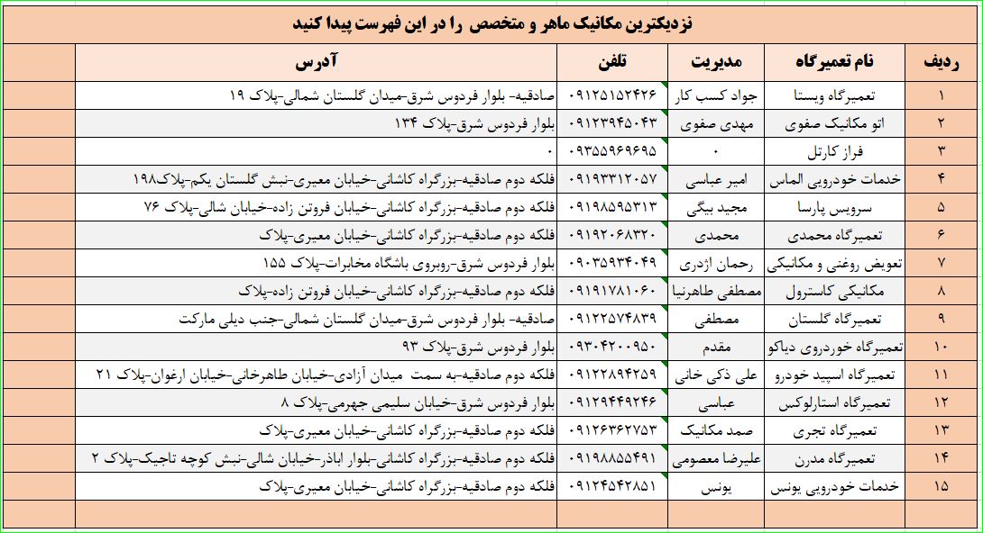 نزدیکترین تعمیرگاه خودرو